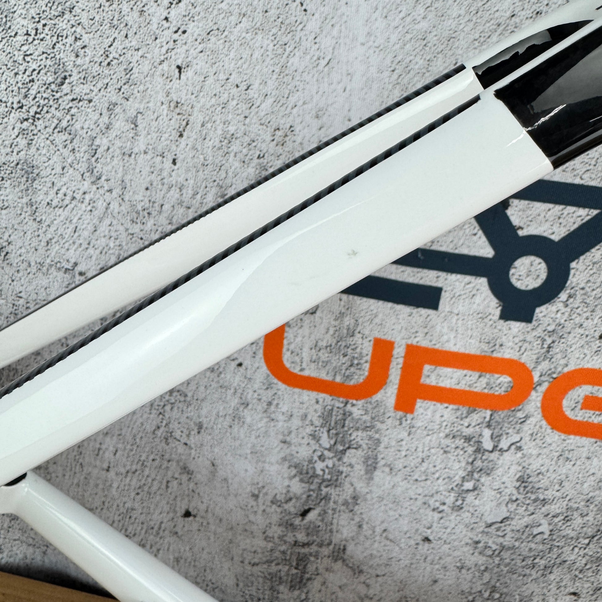 Condition: No cracks or carbon defects were identified through a thorough visual inspection. The cosmetic imperfections to highlight include: A scratch on the head tube shown in pic #8, and some light scratches on the seatstay and chainstay shown in pics #9 & 10. We have attempted to show all noticeable imperfections in specific close-up pictures, however other minor imperfections and light signs of use may exist.