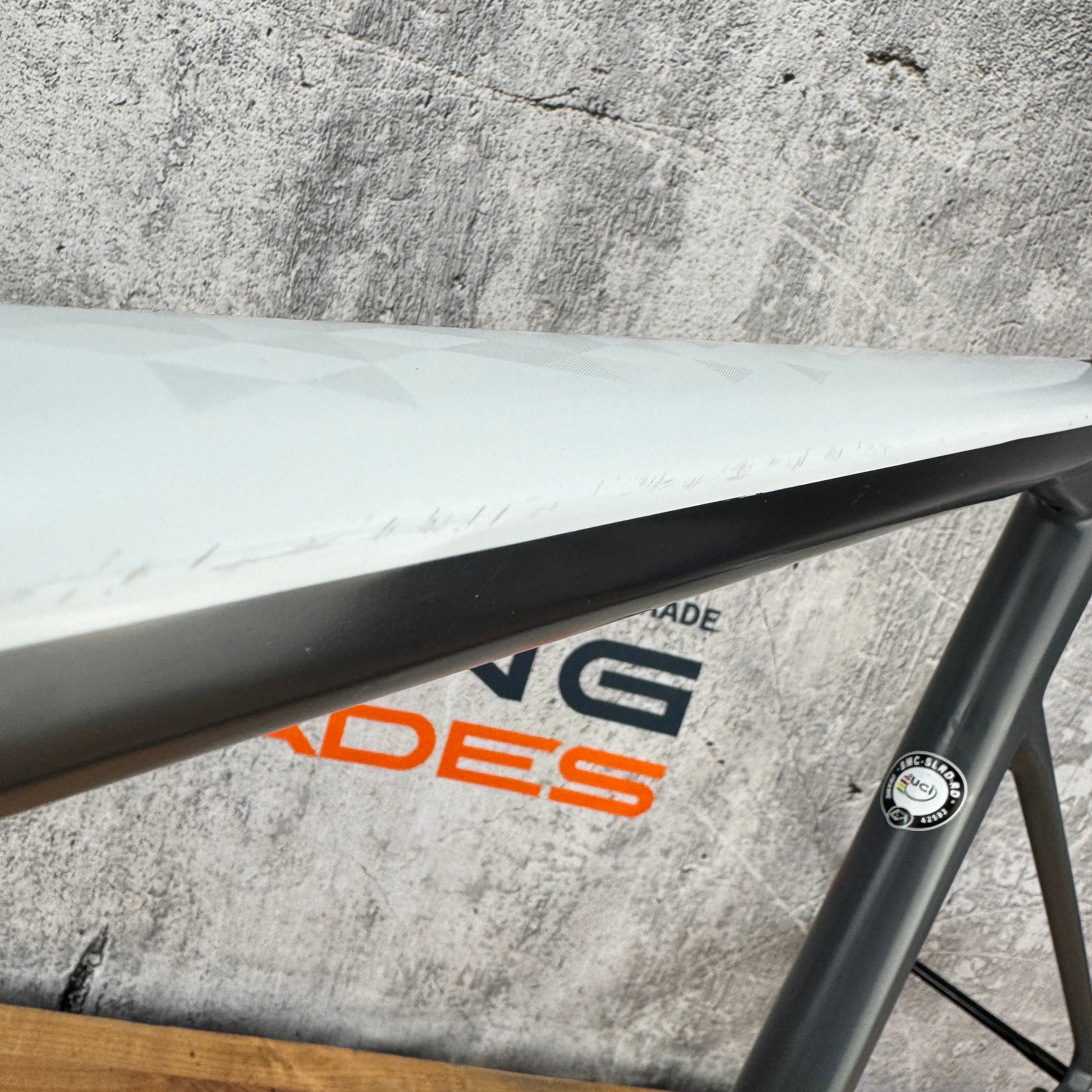 Condition: No cracks or carbon defects were identified through a thorough visual inspection. The cosmetic imperfections to highlight include: Scratches can be seen on top tube in pictures #13-15. We have attempted to show all noticeable imperfections in specific close-up pictures, however other minor imperfections and light signs of use may exist.