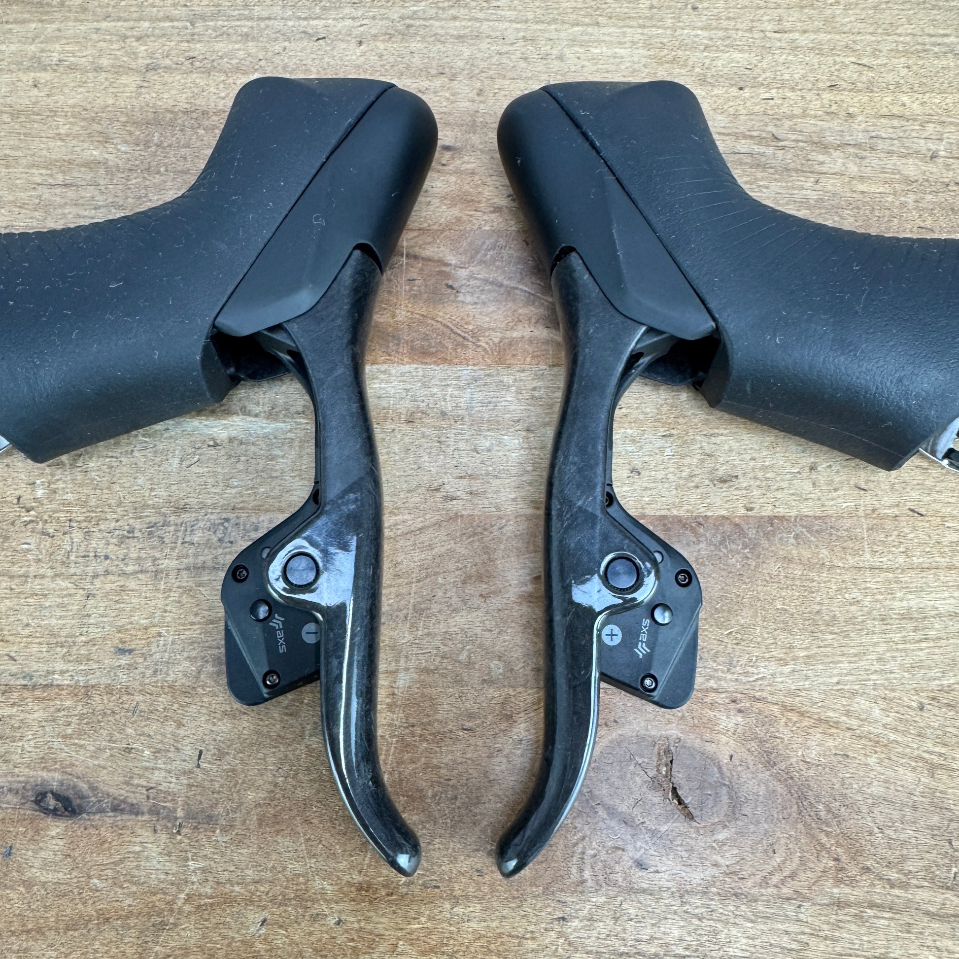 Shifters: Sram Red AXS. Light wear on the lower edges of the levers from prior use. Hood covers feel near new. No significant scratches or imperfections to point out.