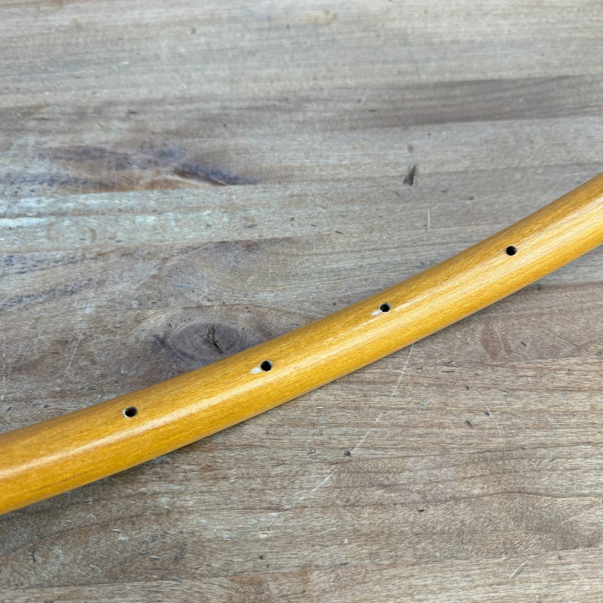 Material: Laminated Slovenian beech wood with a thin carbon fiber bead strip embedded on the clincher bead seat.