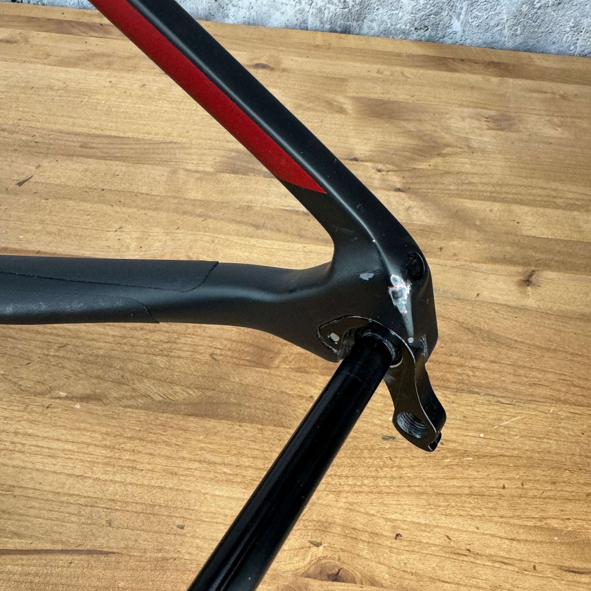 Condition: No cracks or carbon defects were identified through a thorough visual inspection. The cosmetic imperfections to highlight include: Some scratches on the chainstay shown in pic #9. We have attempted to show all noticeable imperfections in specific close-up pictures, however other minor imperfections and light signs of use may exist. Per prior owner claims this frame has less than 100 miles on it