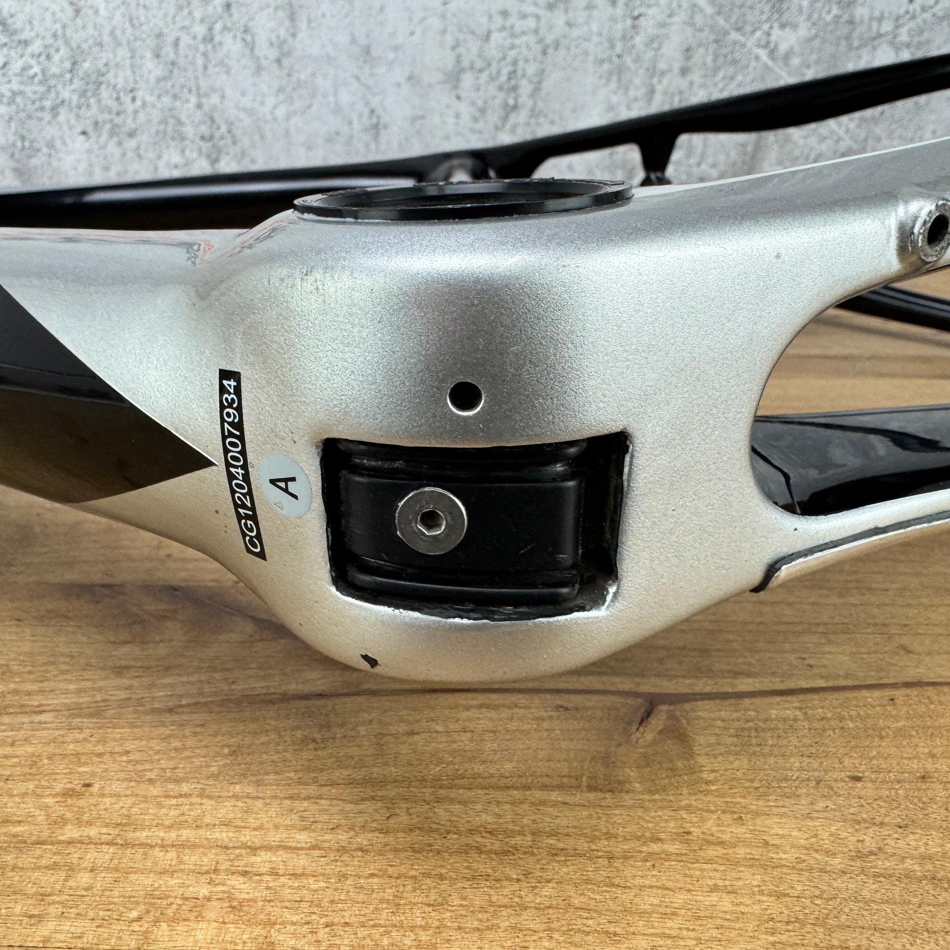 Groupset compatibility: Frame can be setup for Di2, EPS, eTap, or mechanical groupsets. This frame was previously setup with an eTap groupset. Other frame/cable stops may be needed for Di2 or mechanical setups. Mechanical cable guide below the bottom bracket intact.