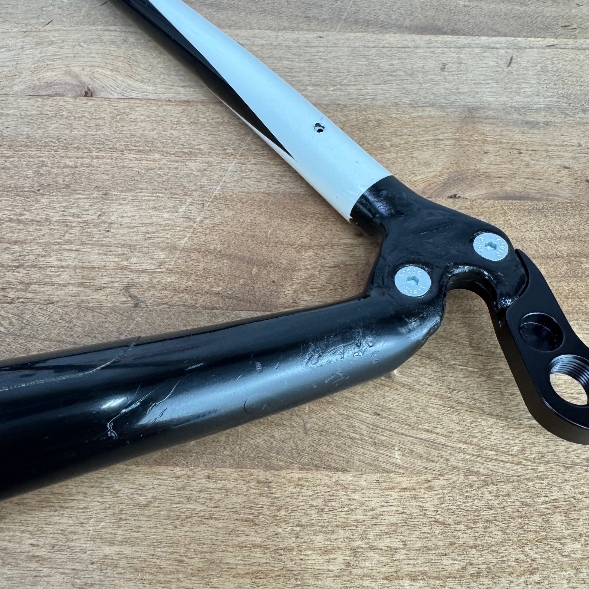 Condition: No cracks or carbon defects were identified through a thorough visual inspection. The cosmetic imperfections to highlight include: Some scratches on the head tube shown in pic #7, and some scratching on the chainstays shown in pics #8-10. We have attempted to show all noticeable imperfections in specific close-up pictures, however other minor imperfections and light signs of use may exist.
