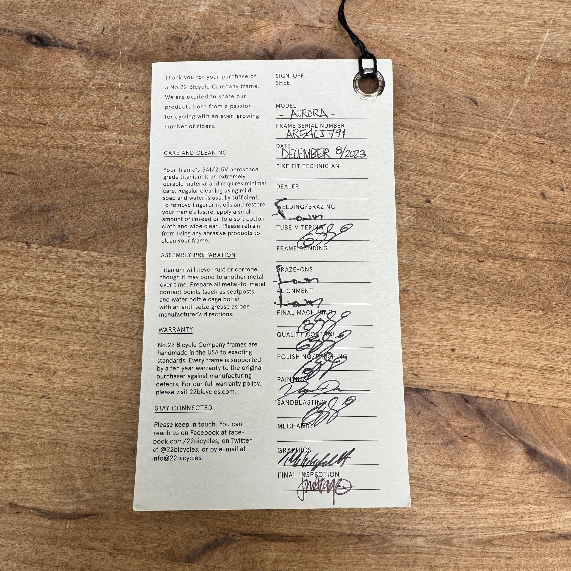 Seatpost: No. 22 titanium 27.2mm diameter seatpost.