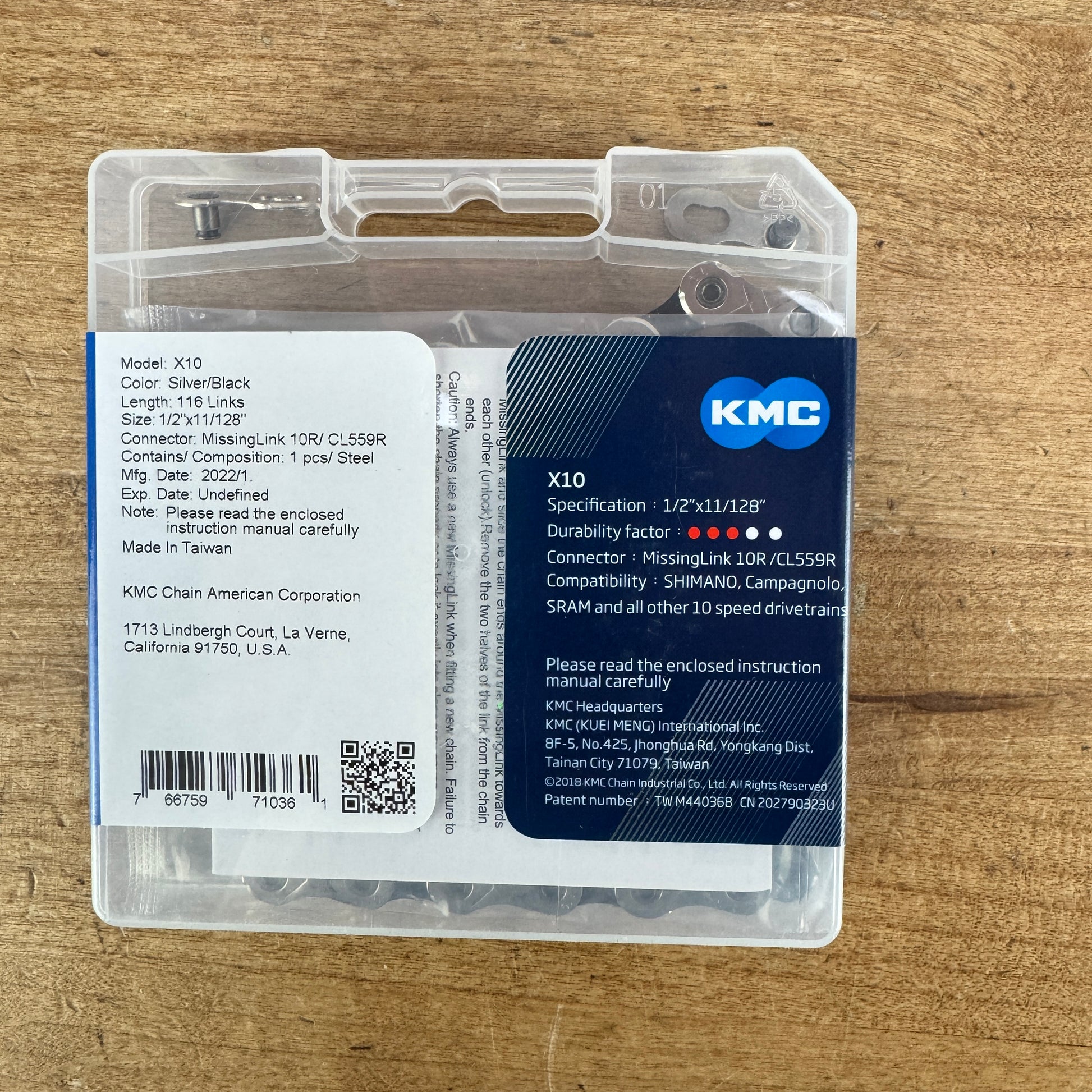 New! KMC X10 116 Links 10-Speed Silver/Black Bike Chain w/ Missing Link