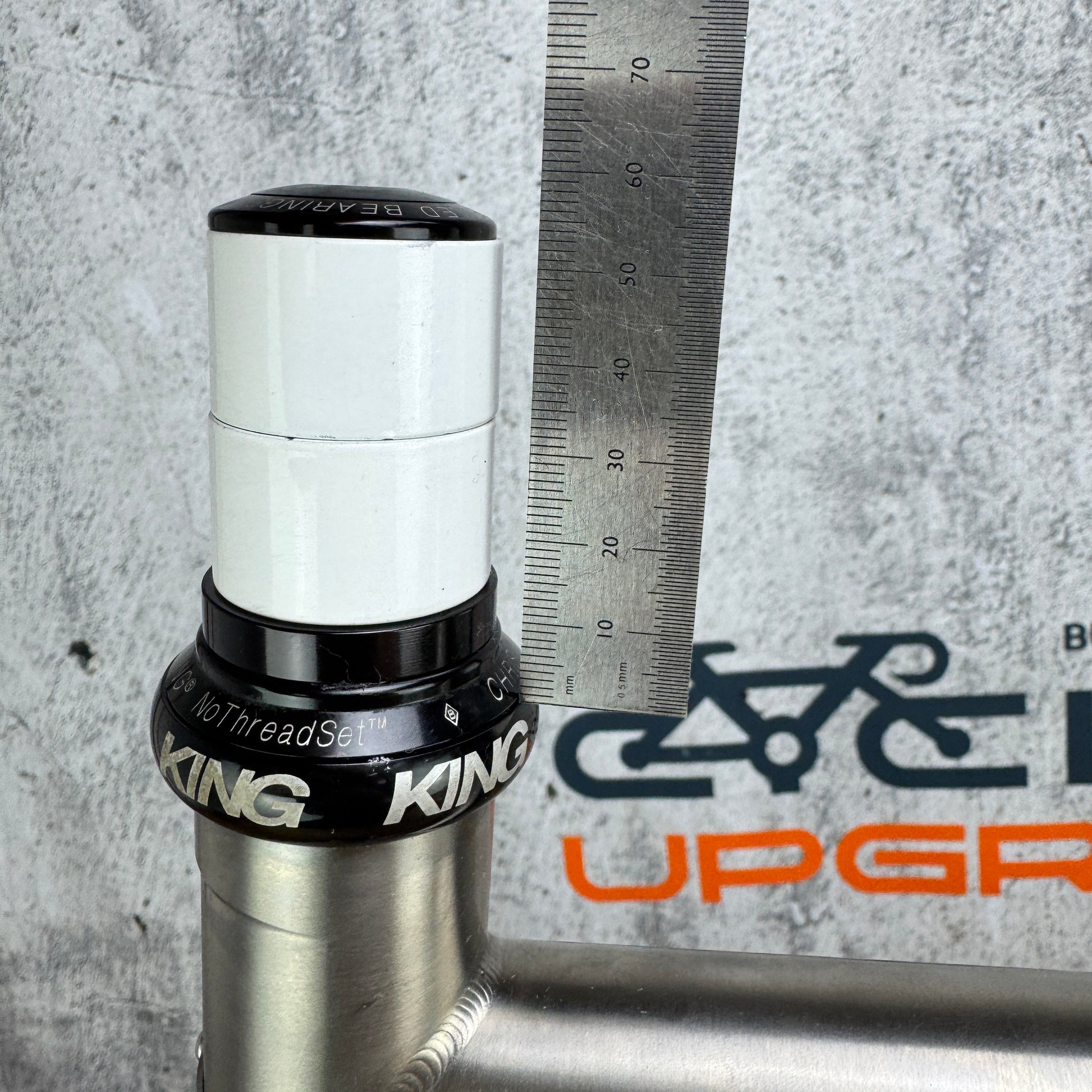 Steerer length: 50mm of steerer above the top tube. 5mm of spacers below the stem plus the headset cover. We may have an option available to safely extend the steerer tube by 15-18mm - message us for additional details.