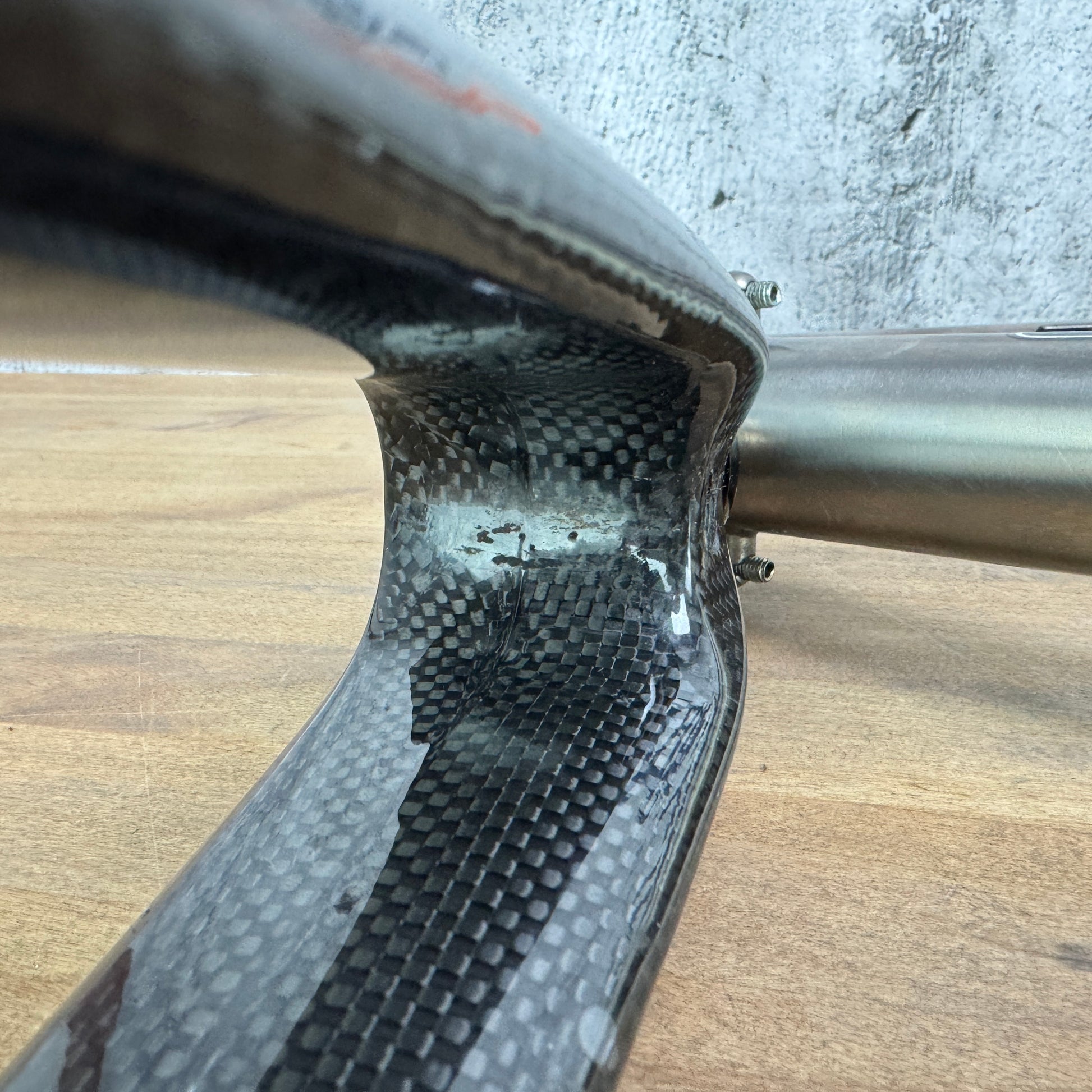 Condition: No cracks or carbon defects were identified through a thorough visual inspection. The cosmetic imperfections to highlight include: Some scratches on the fork shown in pics #10 & 11. We have attempted to show all noticeable imperfections in specific close-up pictures, however other minor imperfections and light signs of use may exist.